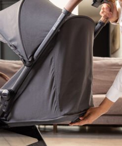 O carrinho possui adaptadores que se conectam perfeitamente com o bebê conforto 4safe. Ele também é muito confortável, com um revestimento que possui
