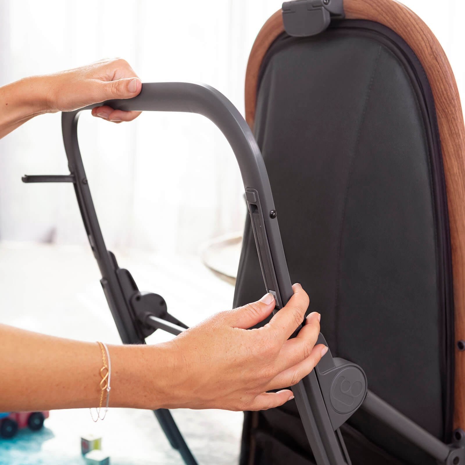 Com a trava nos pés de fácil ajuste, Kori se transforma em uma cadeira de balanço para