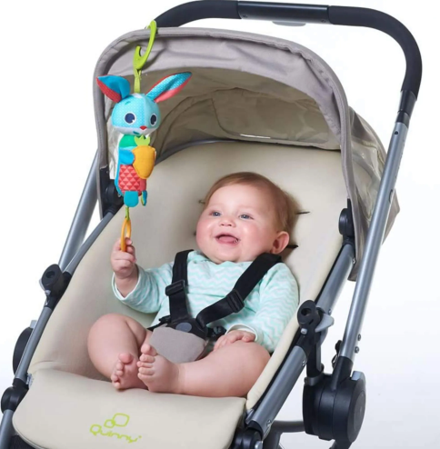 – Clipe universal em argola para encaixe em carrinho, moisés, bebê conforto, etc.