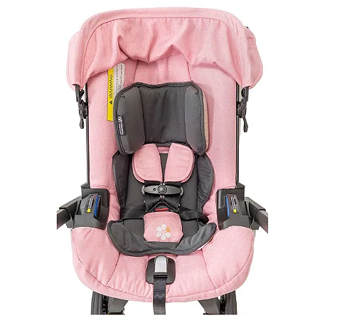 Possui Capa de assento para não sujar o carro ao colocar o carrinho e apoio para recém-nascido.