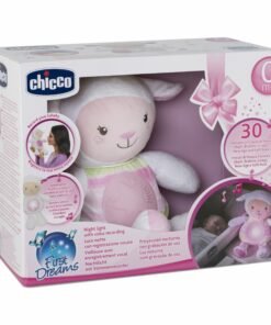 A ovelha doce soninho traz, em sua barriguinha, transições de suaves luzes coloridas, em formato de estrela, para acompanhar o bebê na hora do sono. Com função de gravador, a mamãe e o papai podem gravar suas vozes. Possui um sensor sonoro, automaticamente ativado quando detecta sons específicos – como o choro do bebê -, emitindo o som da voz gravada. Além disso, possui luzes com transição automática de cores e 30 minutos de tranquilidade, com sons da natureza, som ambiente e melodias.