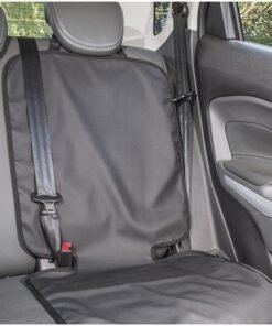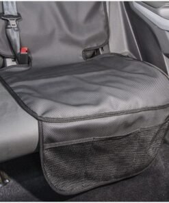 O protetor de banco possui 3 bolsos pequenos. Protege o assento e encosto do banco do automóvel sendo preso através do encosto de cabeça do banco do automóvel.