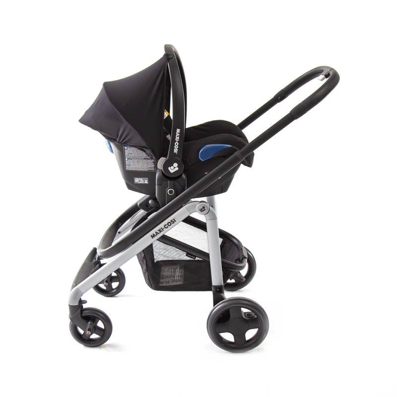 O conjunto acompanha o bebê conforto Citi com base, certificado pela TÜV-Rheiland para uso em aviões e aprovado pelo FAA (Federal Aviation Administration). O bebê conforto encaixa diretamente na estrutura do carrinho e na base veicular, com sistema click&go, para facilitar a instalação no automóvel, através do cinto de segurança de 3 pontos, com total segurança. Citi possui redutor acolchoado para acomodar o recém-nascido e estrutura com proteção extra Safe Side, contra impactos laterais. Capota em tecido esportivo que não amassa e revestimento removível e lavável em máquina. Bebê conforto Citi com base é aprovado pelo INMETRO conforme a norma ABNT NBR 14.400 para crianças do nascimento aos 13kg (Grupo 0+) e pelos mais rígidos testes internacionais de segurança. Garantia de 5 anos mediante registro do produto no website Maxi-Cosi no período de até 6 meses após a compra realizada no Brasil.